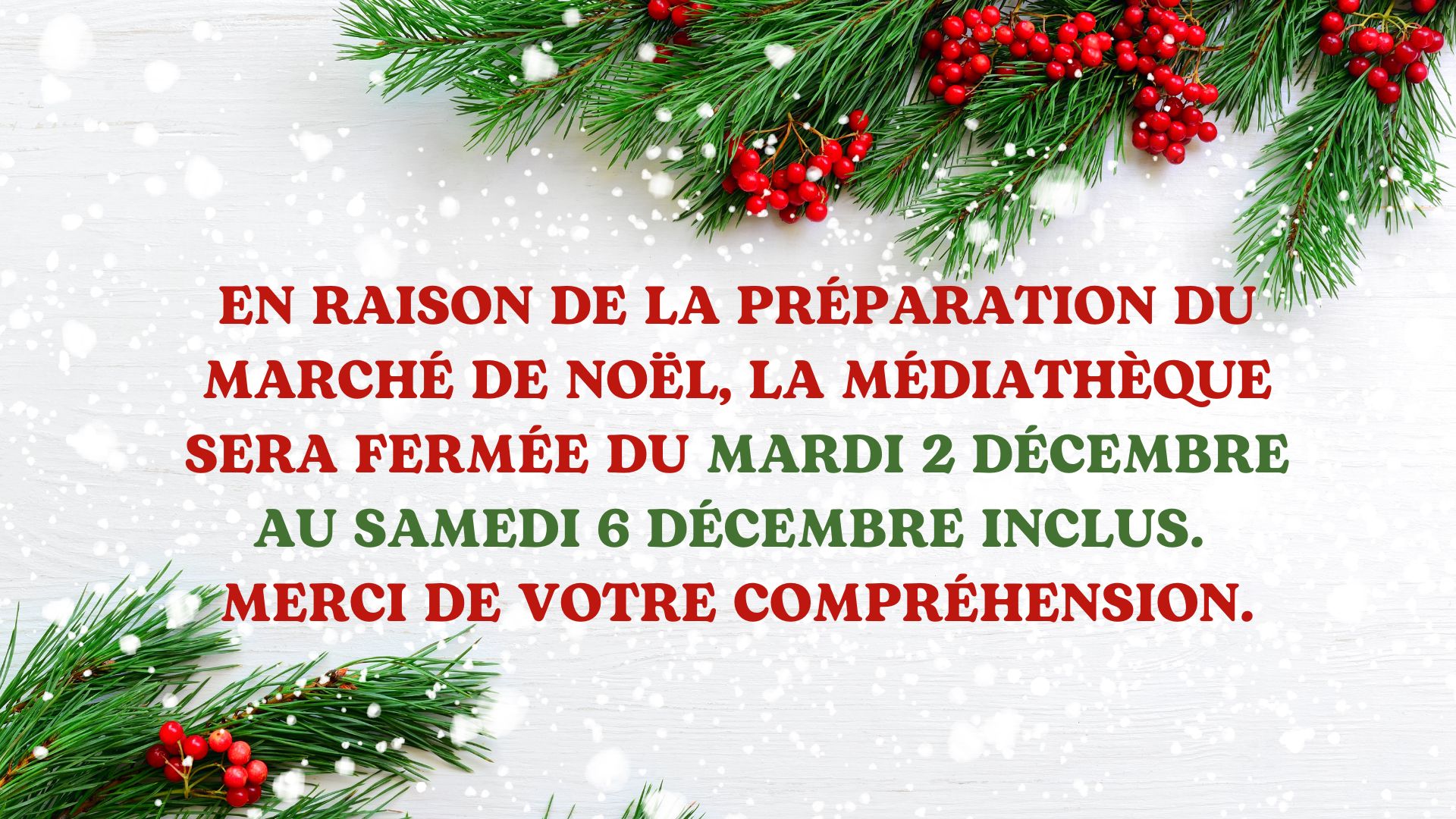 Fermeture Médiathèque semaine du 2 au 6 décembre 2025