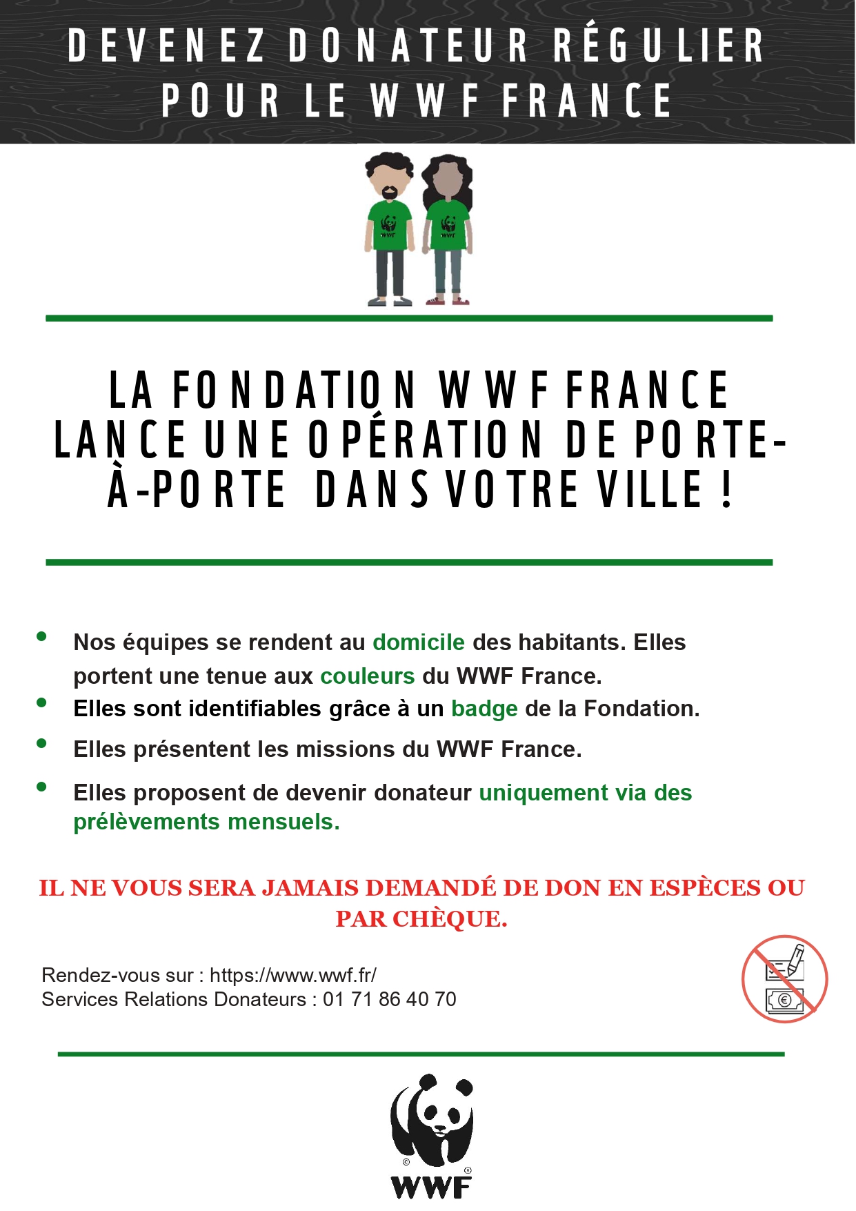 Campagne de porte-à-porte pour WWF sur Moncheaux du 2 au 28 février 2026.